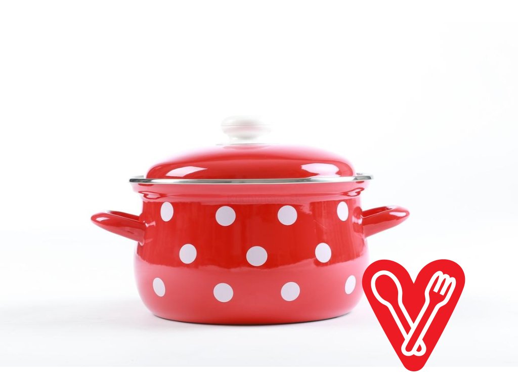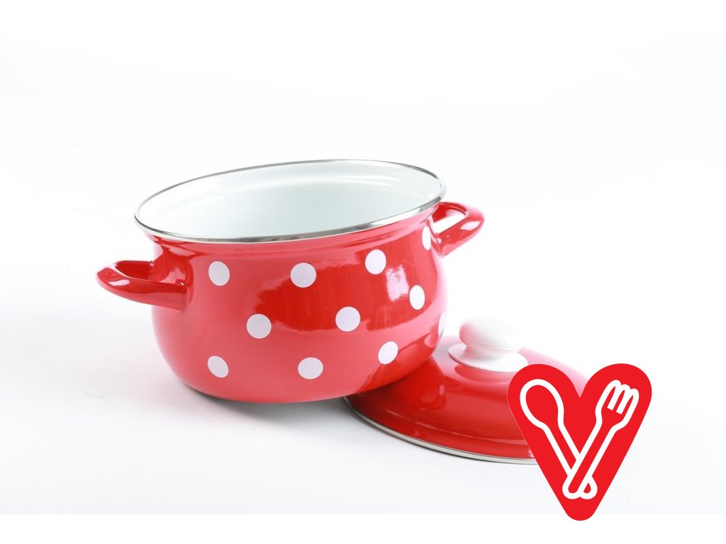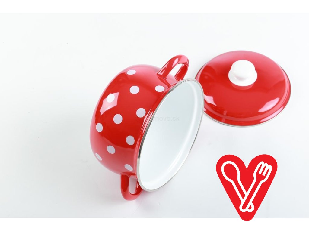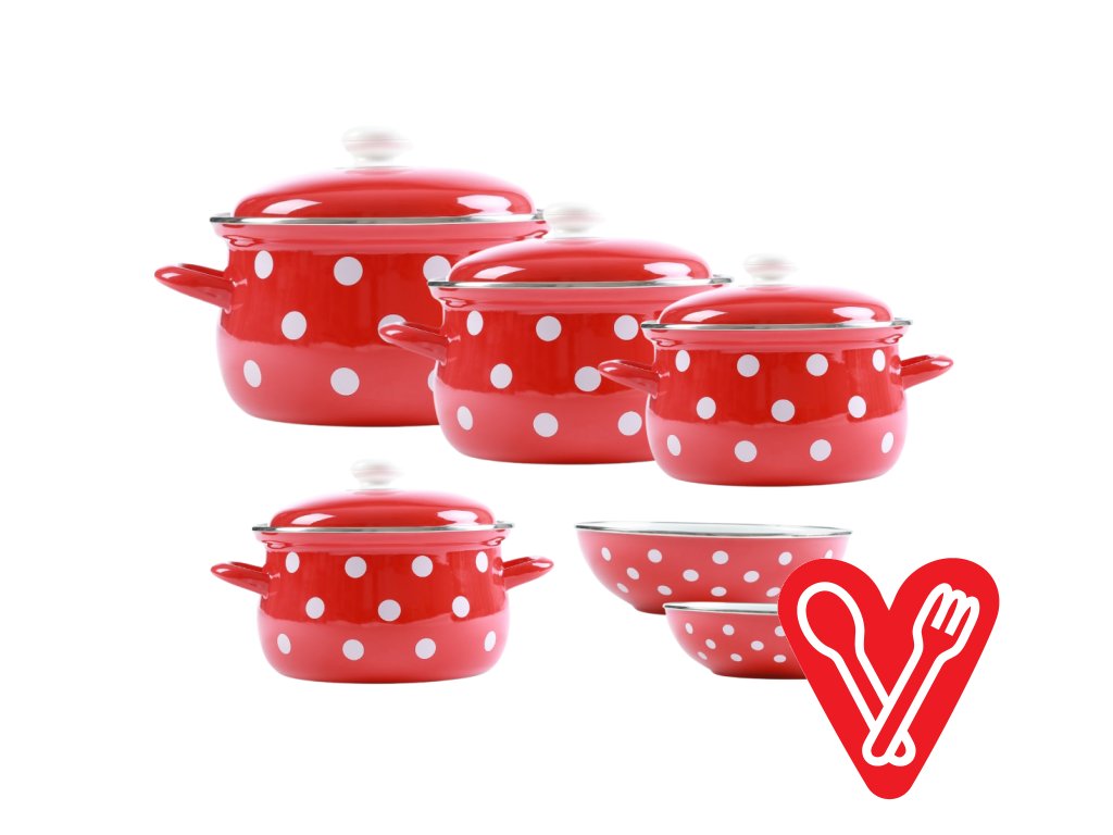BELIS súprava smaltovaných hrncov červených s bielymi bodkami, 10 ks