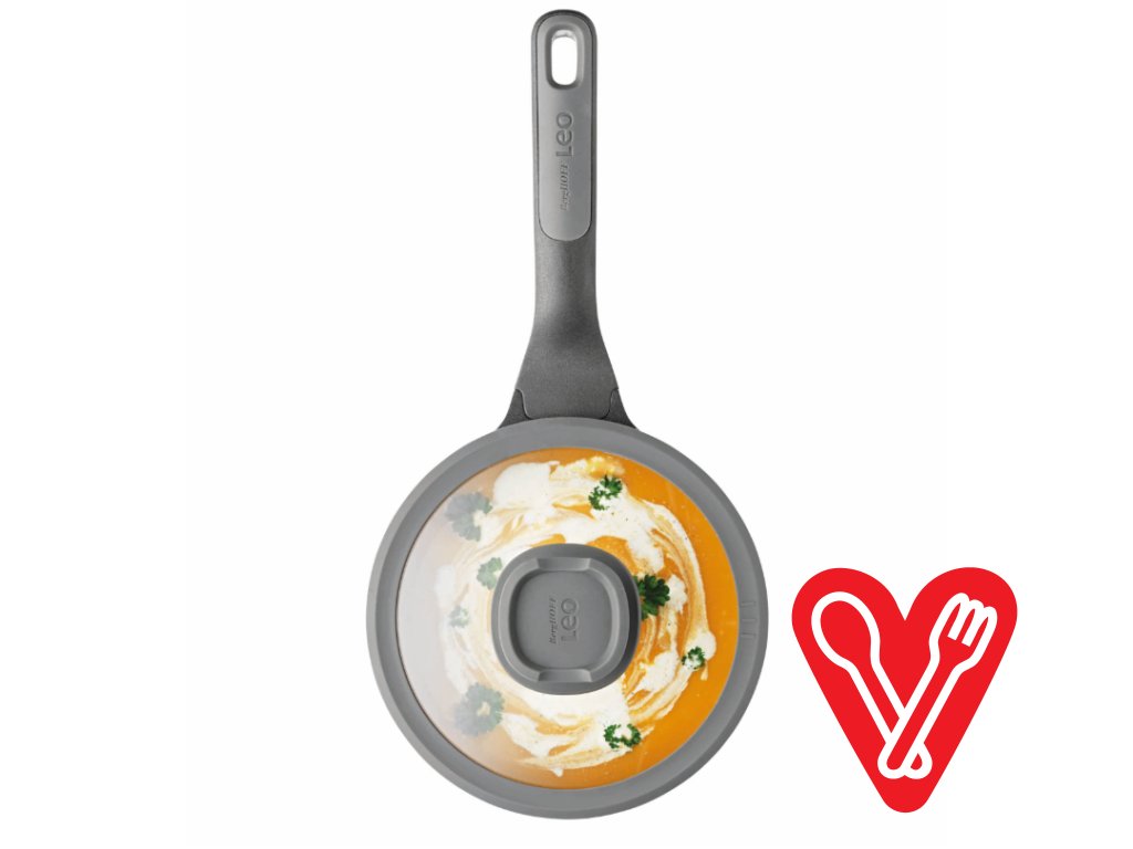 Nepriľnavý keramický povrch CeraGreen bez PFAS umožňuje varenie s minimom oleja a jednoduché čistenie. Sklenené veko je vybavené odtokovým otvorom na ľahké cedenie a gombíkom, ktorý slúži ako opierka na lyžicu. Odnímateľné silikónové návleky zvyšujú pohodlie a bezpečnosť pri manipulácii, pričom rajnicu je možné použiť aj v rúre do 180 °C.