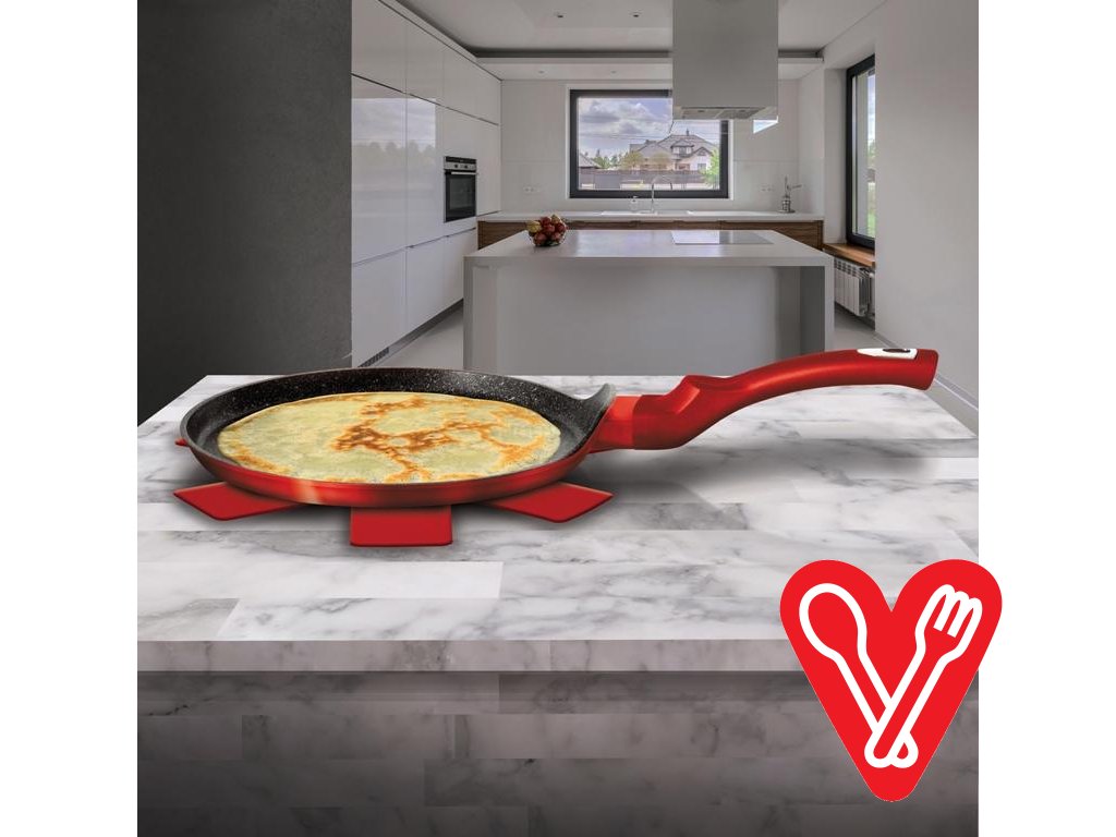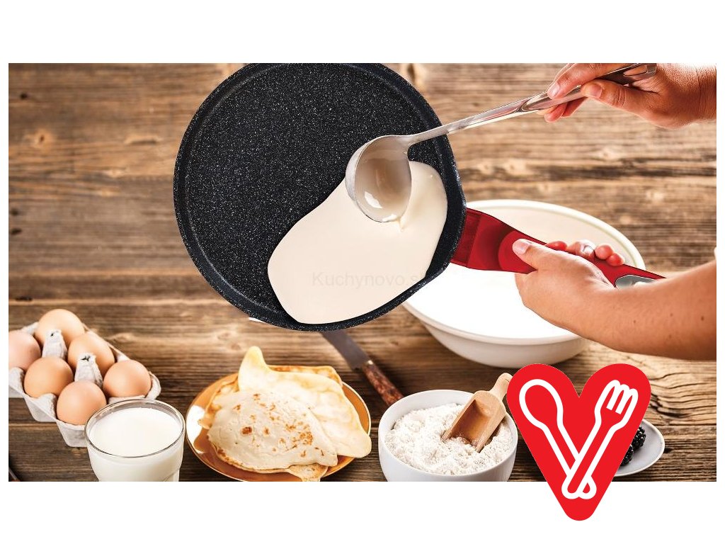 Elegantná burgundská panvica 25 cm z hliníka s nepriľnavým povrchom, turbo indukčným dnom, silikónovou rukoväťou a ECO-friendly zložením. Ideálna na palacinky.