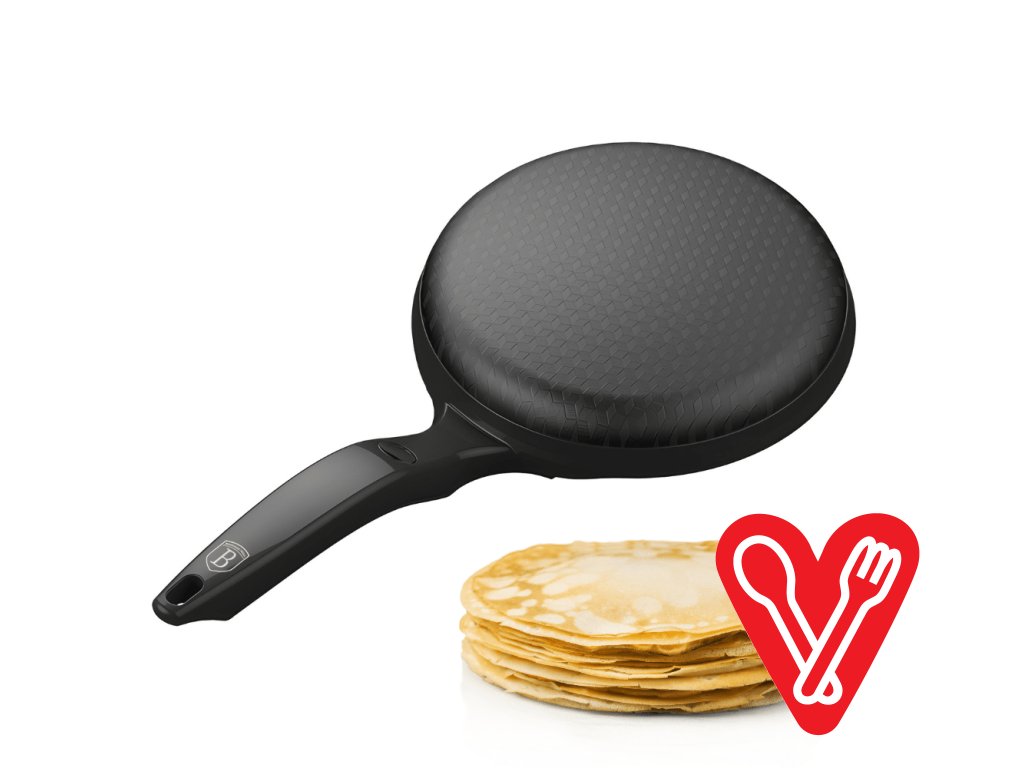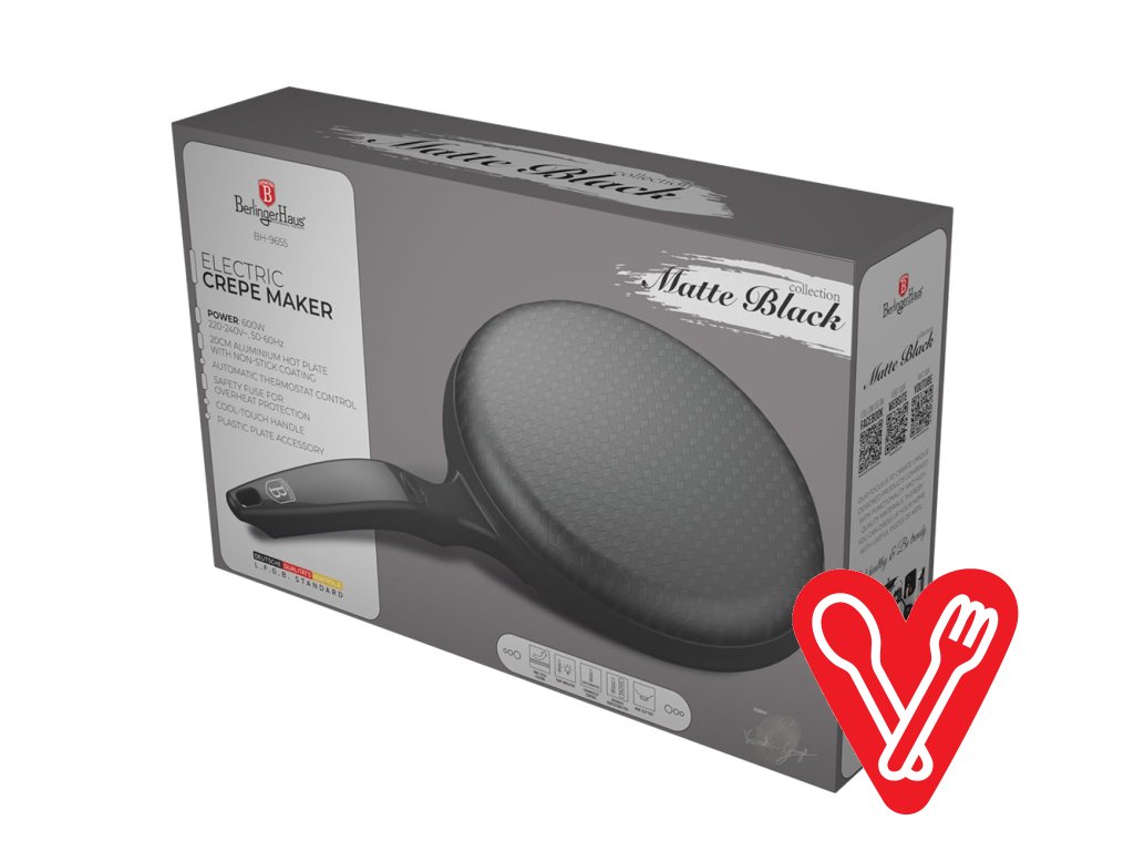 Praktická elektrická panvica na palacinky BerlingerHaus Matte Black s nepriľnavým povlakom, automatickou reguláciou teploty a jednoduchou obsluhou. Ideálna na rýchlu prípravu tenkých palaciniek bez pripálenia.