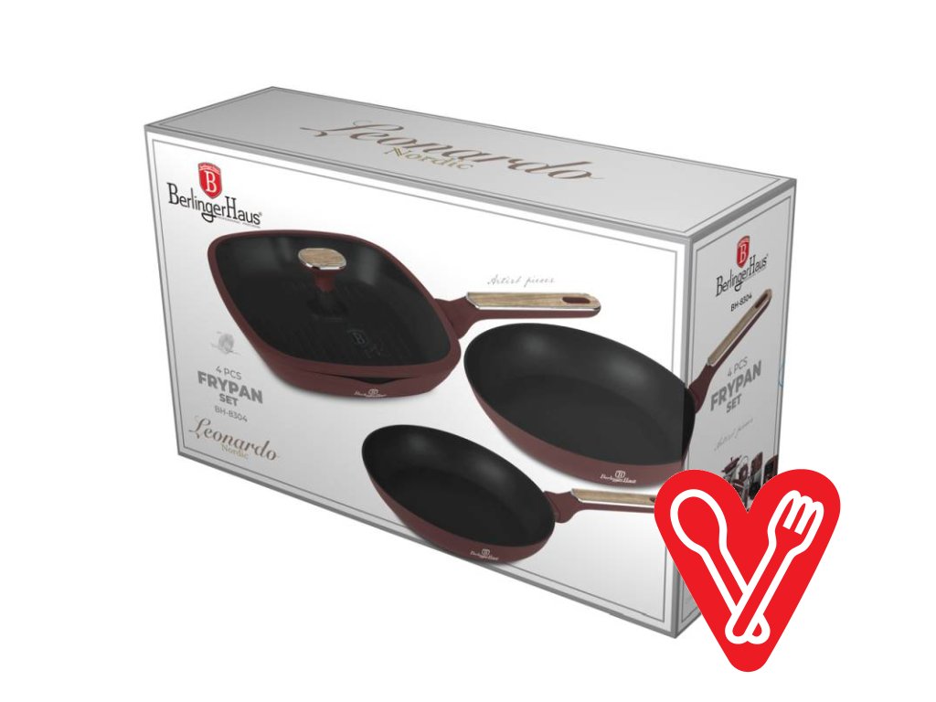 4-dielna sada panvíc Berlinger Haus BH8304 z kolekcie Leonardo Nordic kombinuje elegantný dizajn, odolný kovaný hliník a trojvrstvový nepriľnavý povrch TitanPro pre zdravé a jednoduché varenie.