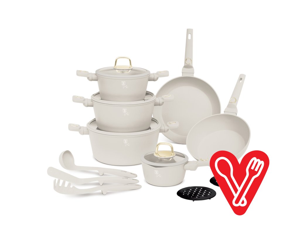 Hrnce sú vyrobené z kovaného hliníka, ktorý zabezpečuje dlhú životnosť a rovnomerné rozloženie tepla počas varenia.