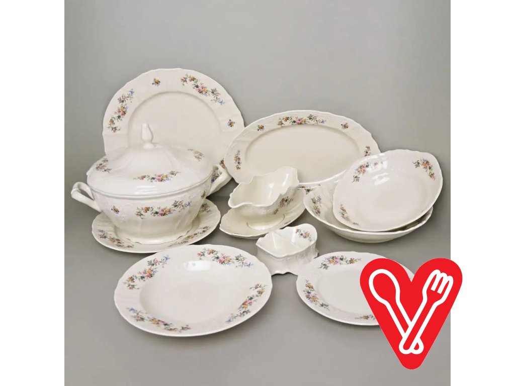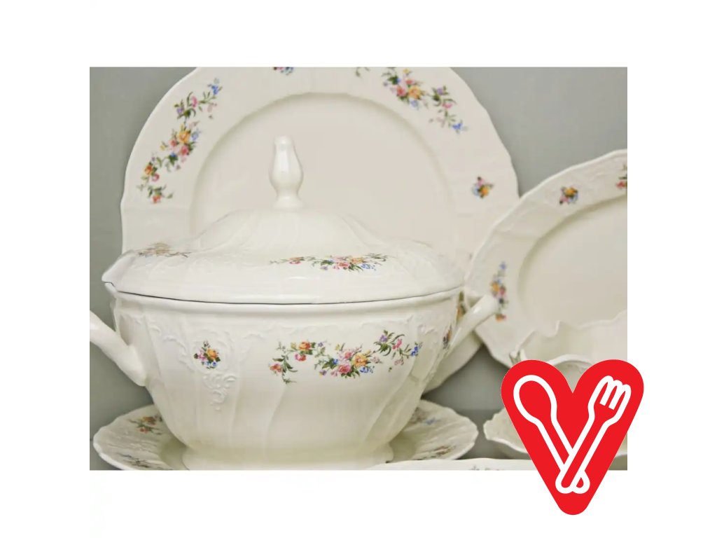 Obedová súprava Rococo (42-dielna, pre 12 osôb) je elegantná obedová súprava vyrobená z porcelánu. Táto obedová súprava s elegantne krojeným...
