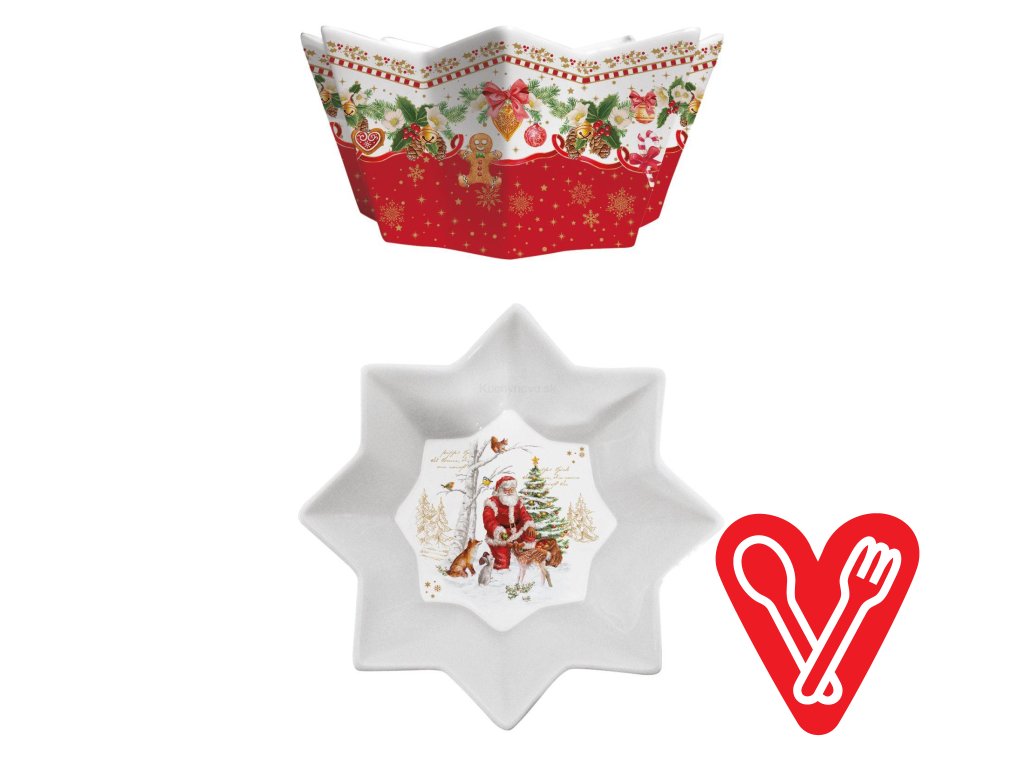Vianočná klasika v podobe Santa Clausa, vianočného stromčeka a všetkého, čo k tomu patrí. Pestrá, červeno – zelená kolekcia s veselými motívmi v štýle vintage, ozdobia Váš domov, naladí Vás na sviatočnú náladu a vyčaruje krásnu atmosféru. Vyberte si z našej ponuky misky, šálky, servírovacie taniere a mnoho iného.