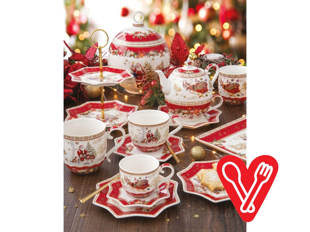 Vianočná klasika v podobe Santa Clausa, vianočného stromčeka a všetkého, čo k tomu patrí. Pestrá, červeno – zelená kolekcia s veselými motívmi v štýle vintage, ozdobia Váš domov, naladí Vás na sviatočnú náladu a vyčaruje krásnu atmosféru. Vyberte si z našej ponuky misky, šálky, servírovacie taniere a mnoho iného.