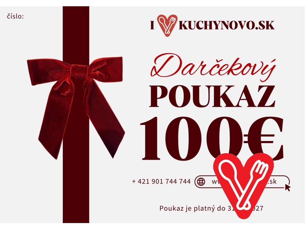 Hľadáte veľkorysý a praktický darček? Naša darčeková poukážka v hodnote 100 € je ideálnym riešením. Obdarovaný si môže vybrať z našej pestrej ponuky, či už sú to jedálenské súpravy, kvalitné nože alebo grily. Je to skvelá voľba, ktorá poteší každého a umožní mu vybrať si vysnívaný produkt pre svoju domácnosť.