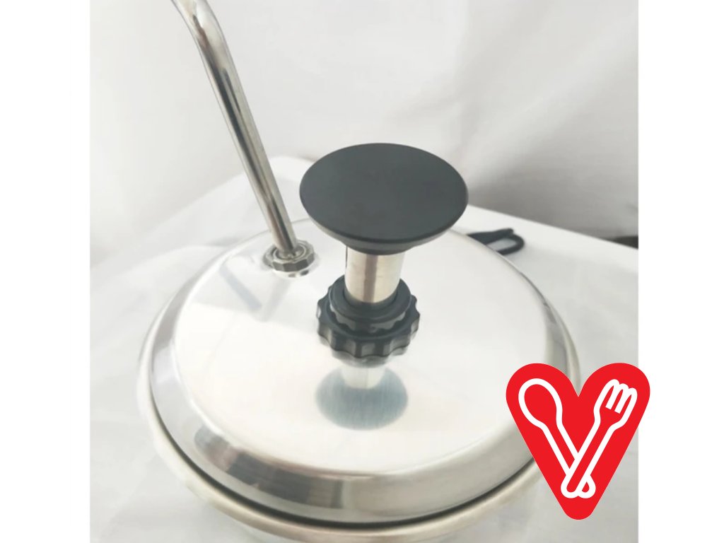 Dávkovač na syr je je vyrobený z potravinárskej nehrdzavejúcej ocele, je antikorózna, ľahko sa čistí. Objem nádoby je 2,5-litra . Tento produkt je navrhnutý pre multifunkčné použitie, veľmi vhodný na tavenie syra, horúceho fudge a iných korenín.