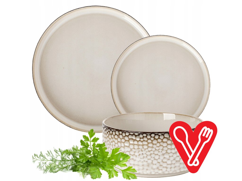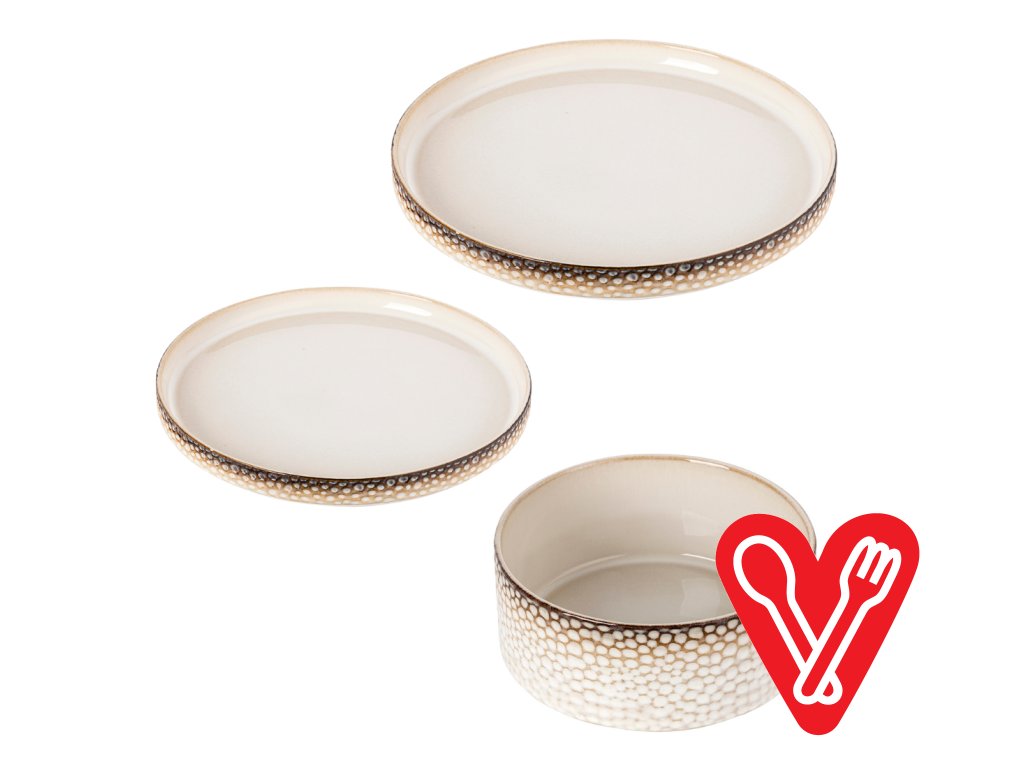 Tanierová sada Harmony (18-dielna, pre 6 osôb) je porcelánová tanierová sada v krémovo bielej farbe s jemnými hnedými bodkami. Dizajn tanierovej...