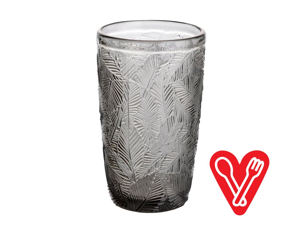Sklenený pohár, so vzorom. Pohár je vyrobený z hrubého skla, veľmi odolný. Ideálny na letné posedenia na terase.Objem: 380 mlFarba: sivá