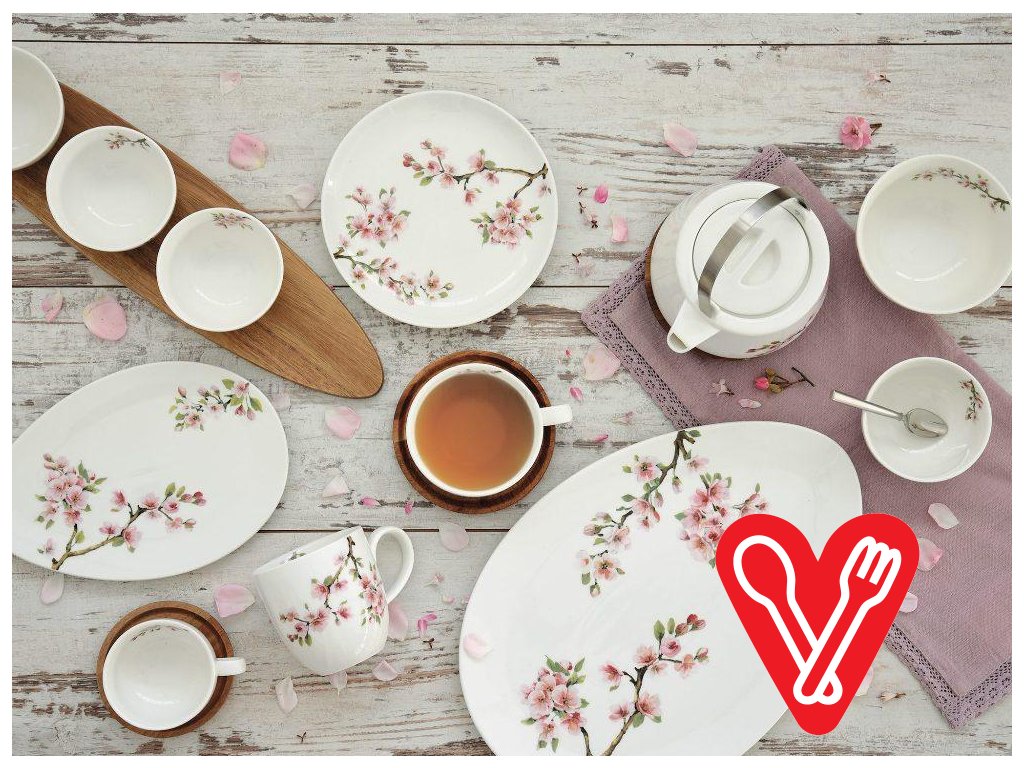 Krásna, prírodná a štýlová kávová súprava v japonskom štýle. Kolekcia zdobená rozkvitnutou japonskou čerešňou je jedinečným doplnkom každej kuchyne.
