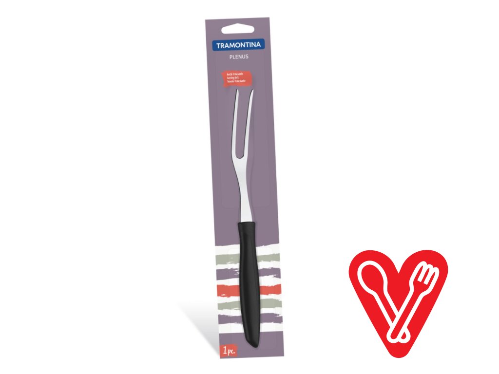 Servírovacia vidlica z rady Plenus z dielne brazílskeho výrobcu Tramontina sa stane praktickým a nepostrádateľným kuchynským pomocníkom. Vidlica je vyrobená z vysoko kvalitnej nehrdzavejúcej ocele a ergonomicky tvarovaná rukoväť z čierneho polypropylénu. Rada Plenus ponúka aj rôzne nôže na krájanie ovocia, zeleniny, syrov, steakov a najrozličnejších druhov mäsa. Vyskladajte si svoj vlastný Plenus set. Vhodné do umývačky riadu.