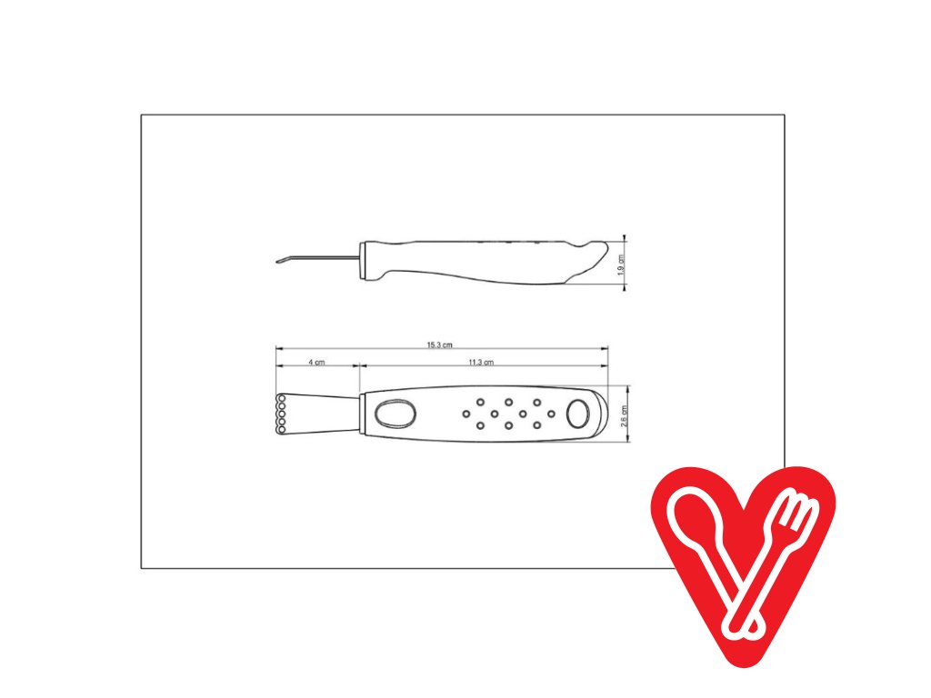Škrabku na citrónovú kôru od brazílskeho výrobcu Tramontina využijete okrem zdobenia jedál aj pri dochucovaní rôznych pokrmov, vyžadujúcich si citrónovú kôru. Škrabka je vyrobená z vysoko kvalitnej nehrdzavejúcej ocele a ergonomicky tvarovaná rukoväť z polypropylénu. Vhodné do umývačky riadu.