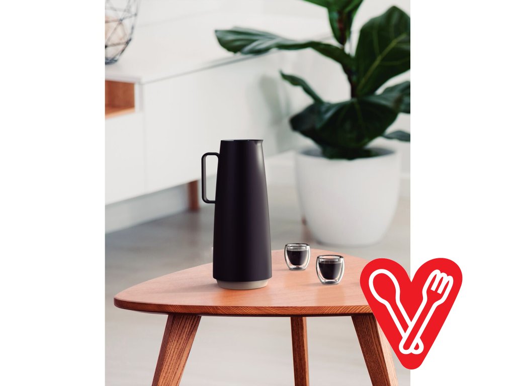 Termoska v tvare karafy z kolekcie Exata z dielne brazílskej značky Tramontina má objem 1 liter. Vyrobená je z kvalitného polypropylénu a sklenenej vnútornej vložky. Vyznačuje sa ľahkou manipuláciou, ergonomickým náustkom, zabudovaným systémom odkvapkávania a nadčasovým dizajnom. Okrem teplých nápojov je vhodná aj pre studené nápoje, kedy udrží ich chlad až 12 hodín.