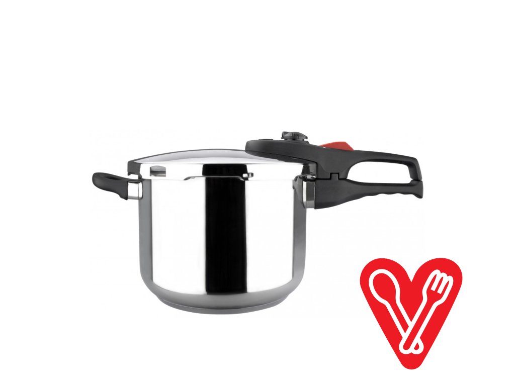 Tlakový hrniec z rady Practica Plus je vyrobený z vysoko kvalitnej nerezovej ocele. Hrniec ponúka dve možnosti použitia tlaku. Nižší 60kPa je ideálny na varenie rýb, zeleniny alebo ryže. Vyšší tlak - 100kPa je zase vhodný pre tepelnú úpravu mäsa. Veľkou výhodou je, že jedlá si zachovajú svoje nutričné hodnoty. Zároveň ušetríte až 70% energie, nakoľko tlakový hrniec varí 3x rýchlejšie ako bežný hrniec.